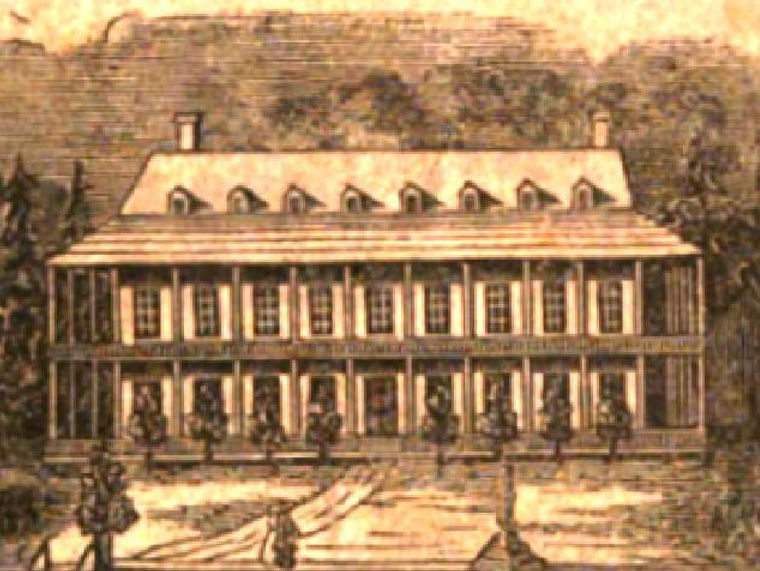 Figure 2 The original hotel at Caledonia Springs as depicted on the cover of William Parker's The History, Rise and Progress of the Caledonia Springs, Canada West (Montreal: James Starke, 1844).