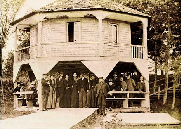 Legends about the original discovery of the special medicinal properties of the waters of Caledonia Springs are many. Whether the supposed medicinal properties of the water were first identified by indigenous peoples or by European settlers is not clear. The Iroquois, for instance, are said to have known of the health-giving properties of the springs and to have introduced them to European settlers in the early 1800s. What is indisputable, however, is that it was the settler community that figured out how to turn the water into money by building a hotel at Caledonia Springs in 1835.